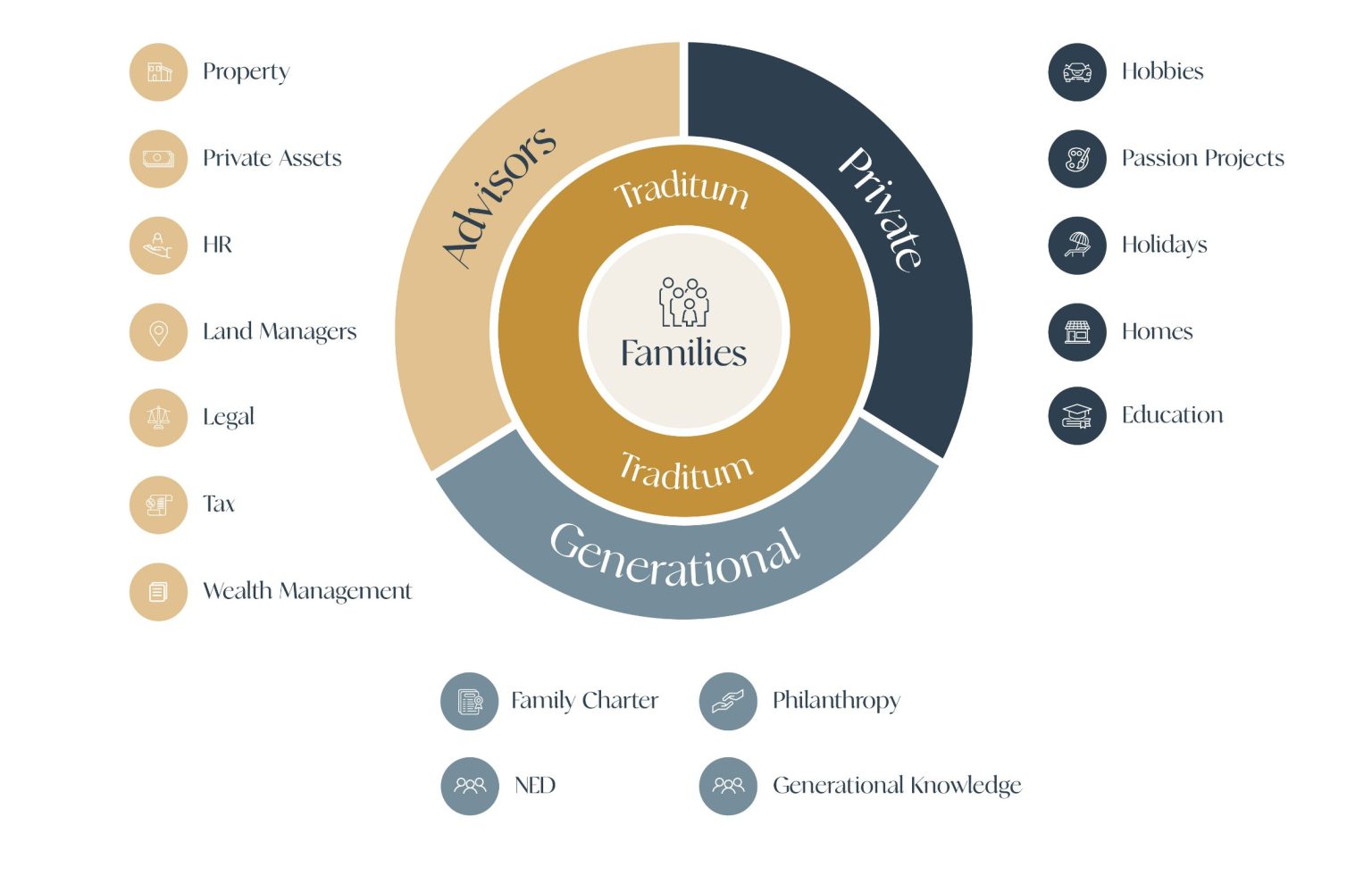 Traditum’s Family Office gives high-net-worth families a single point of contact to ensure coordination and optimisation of their multi-disciplined advisors. We oversee and align investment strategies across stockbrokers, taxation, law, trusts, and property.